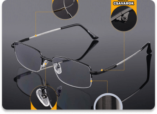 A szemüveg erős fémkerettel, rendkívül strapabíró titánium szárral rendelkezik. Hölgyek és urak is bátran hordhatják, stílusos, kényelmes viselet.